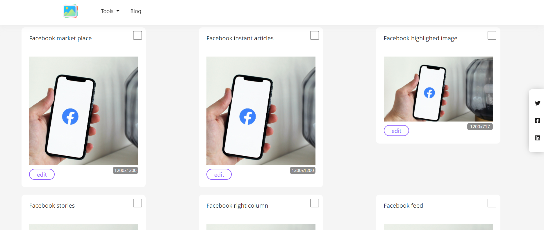 Safeimagekit.com’s Facebook image resizer has a lot of options for resizing a picture you’ve uploaded for modification. Creating several variations of the image in different categories is one of the key benefits.